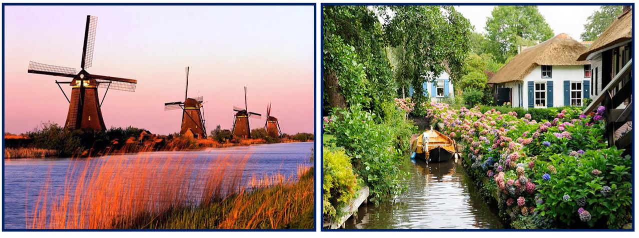 - Làng cổ Giethoorn Hà Lan - thị trấn nổi tiếng với tên gọi ngôi làng không đường đi. Xung quanh từng ngôi nhà được bao bọc bởi những bụi hoa lớn rực rỡ, những khu vườn được chăm sóc cẩn thận. Ngôi làng cổ Giethoorn có phong cảnh thiên nhiên tuyệt vời với những con kênh xanh trong hiền hòa, thảm thực vật đa dạng với các loài hoa đủ màu sắc và những ngôi nhà nhỏ xinh xắn.